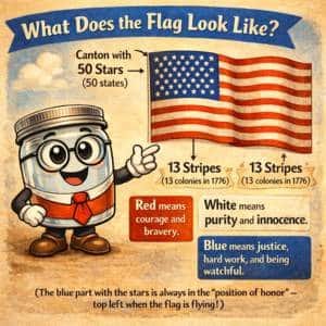It’s called “Old Glory,” the “Stars and Stripes,” or just “the flag,” and it’s one of the most famous symbols in the whole world. It stands for freedom, bravery, and all the people who make our country awesome.
